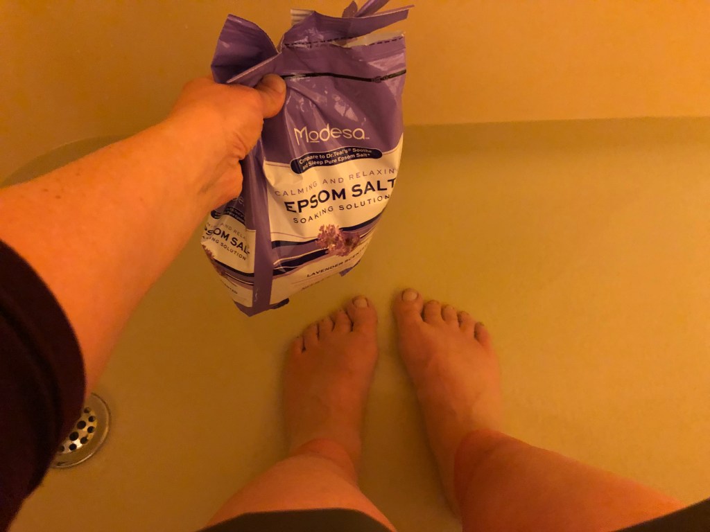 As I write this post, my feet are soaking in epsom salt. Around mile 15 yesterday, with a couple miles left to go to town, my feet let me know they’re putting themselves up for adoption. They would prefer a home, err, human who is not currently walking 15-17 miles a day. They enjoy dog walks. They can handle dog walks.