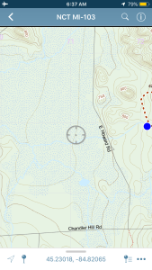 I was aiming to camp in a small patch of public land bordering a road walk, another difference between my printed maps and Avenza. I suspected when I got there, there might not be public land. Has Michigan been selling parcels of state forest, I wondered? So far the differences between the March 2018 Avenza maps and November 2018 printed maps always shows less public land. The uncertainty of dispersed camping on public land was one of the challenges I most looked forward to on this hike. Getting to make my own camp, figure out how to read the woods, find good spots, all drew me to this trail, but I knew it would push me out of my comfort zone.