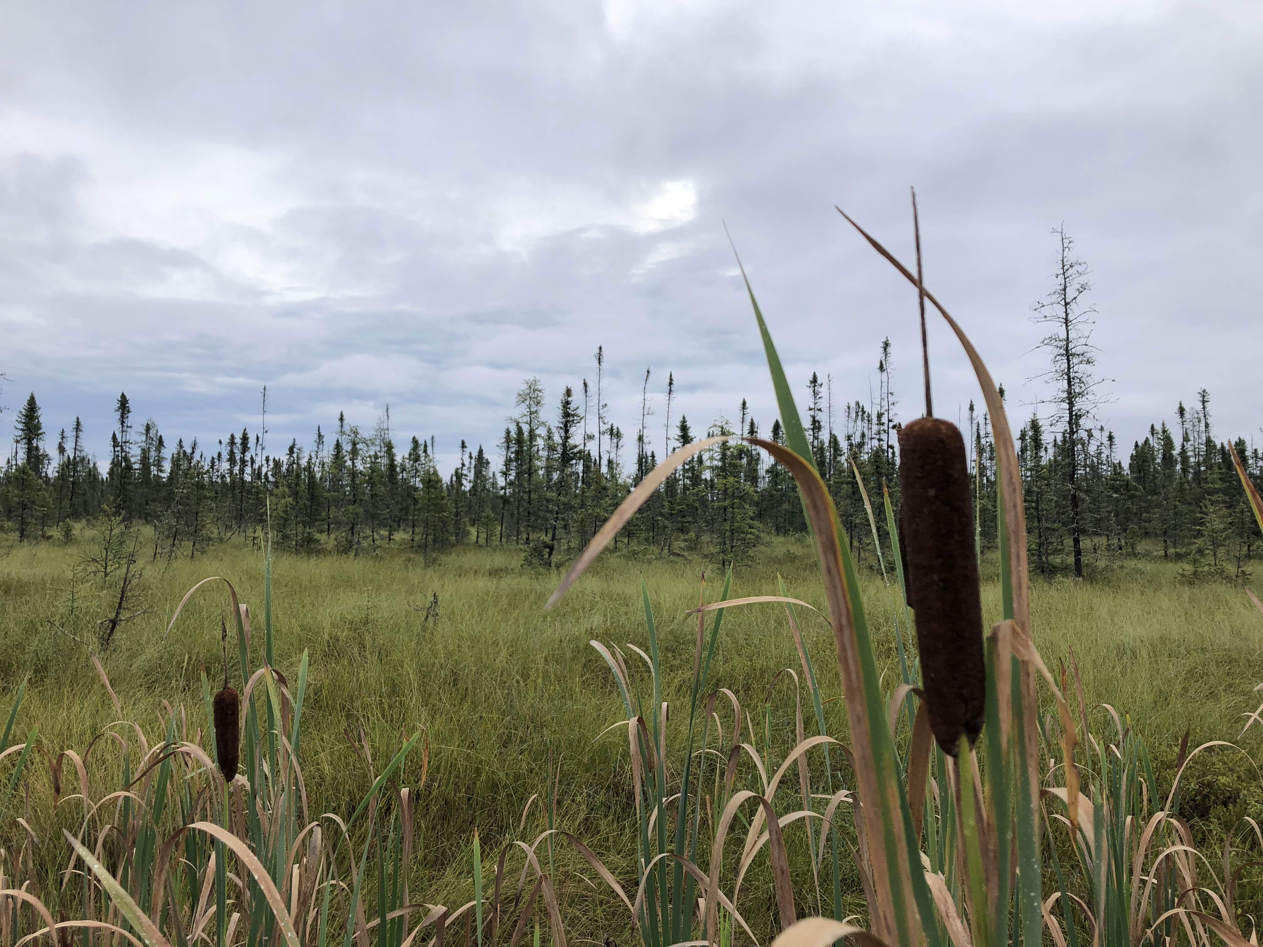 A cat tail grows in a northwoods bog.
