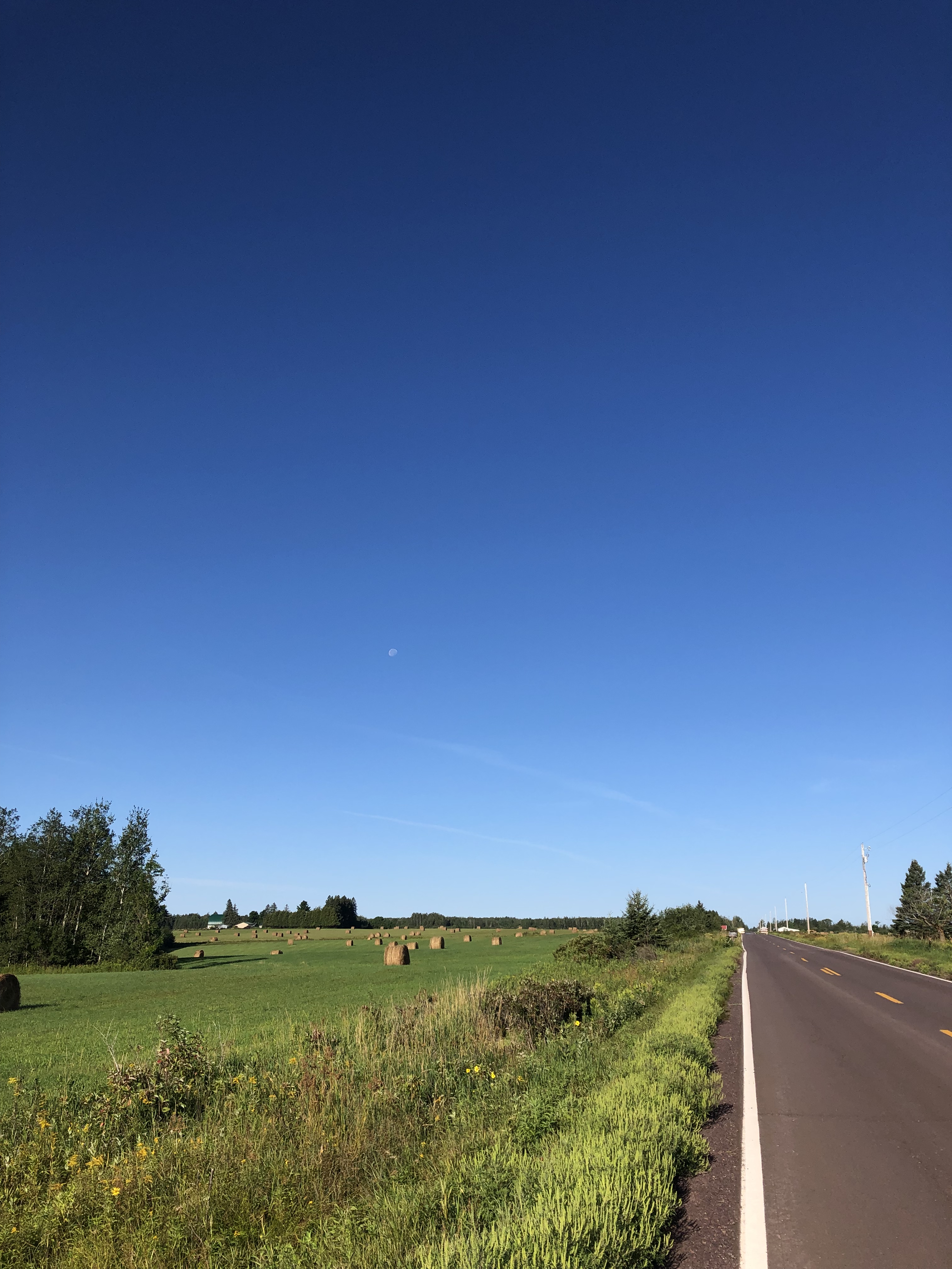 Hay bales dry beneath an impossibly blue sky.