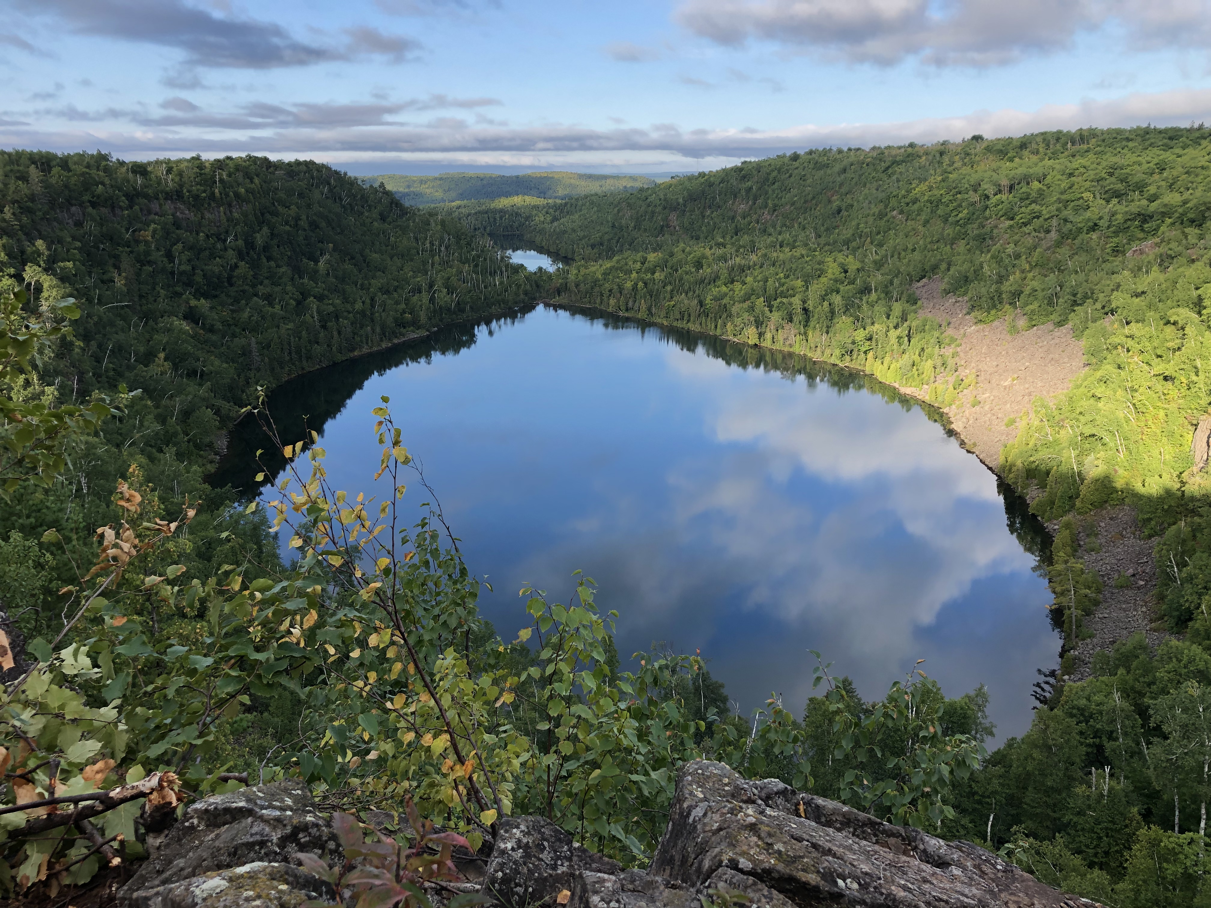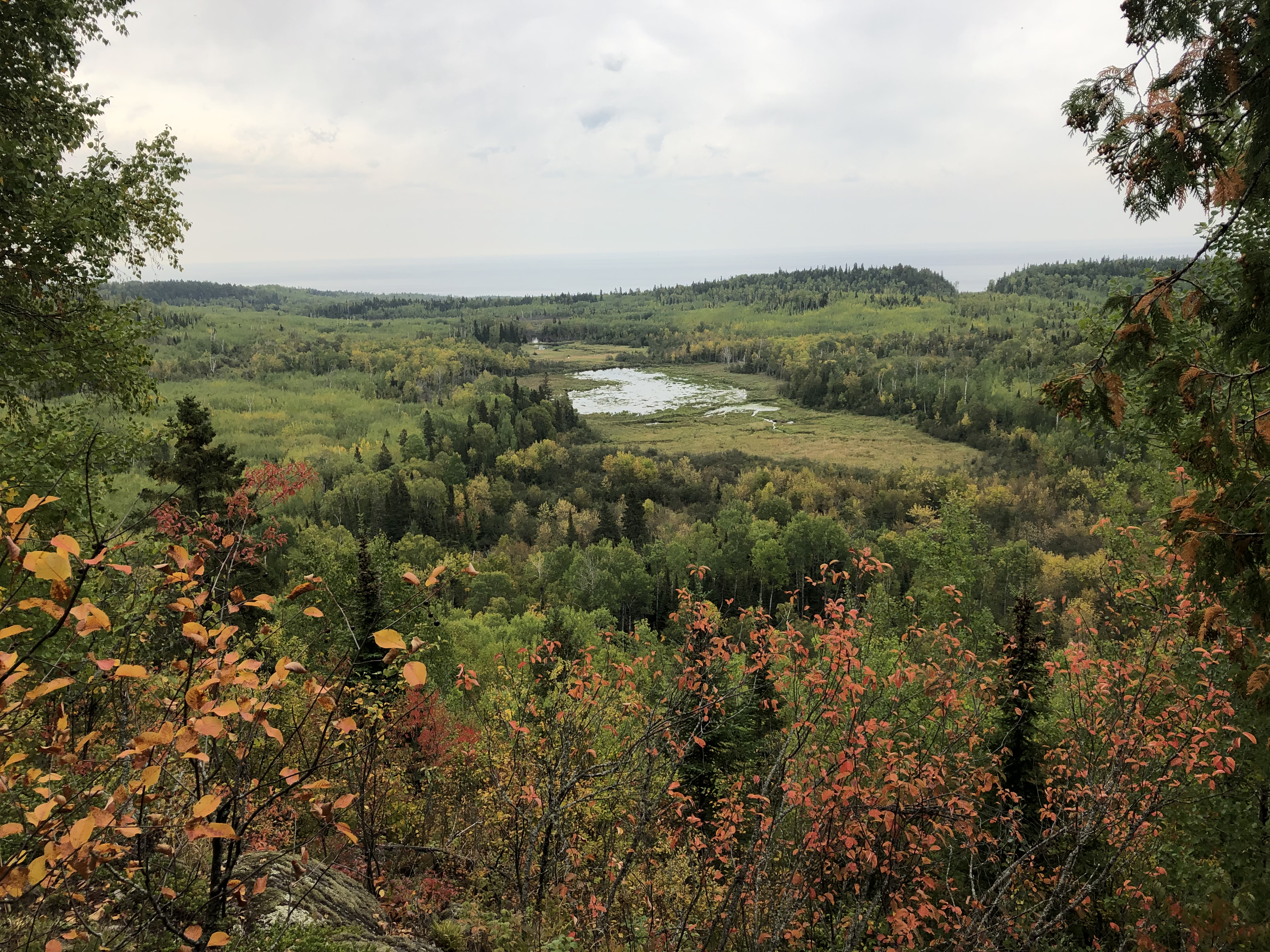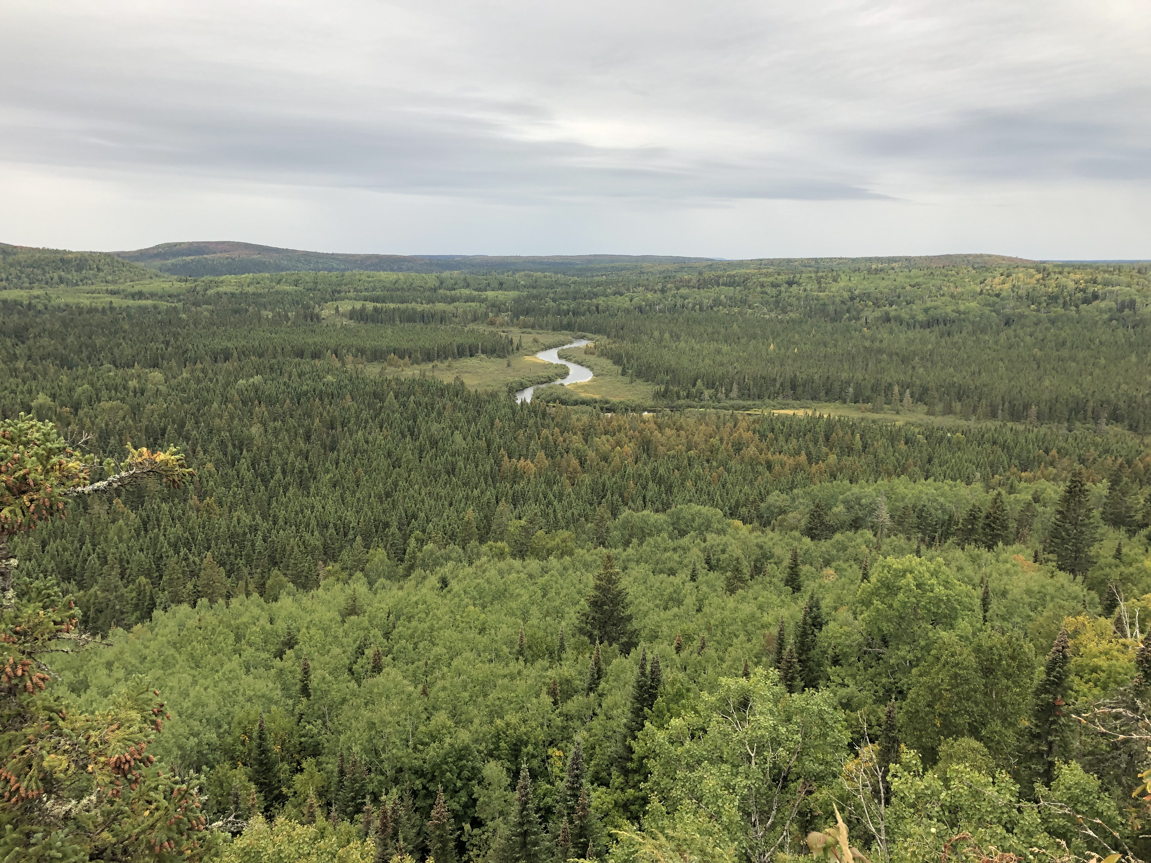 I set out from Big Bend planning to hike 22 miles, traveling along Silver Creek, one of my favorite stretches of trail on this southern part of the Superior Hiking Trail. The flat lands were ending, and I entered into the beginning of the Sawtooth Mountains as I neared the Encampment River, getting expansive views of Lake Superior again as I climbed to the top of pine-studded ridges.