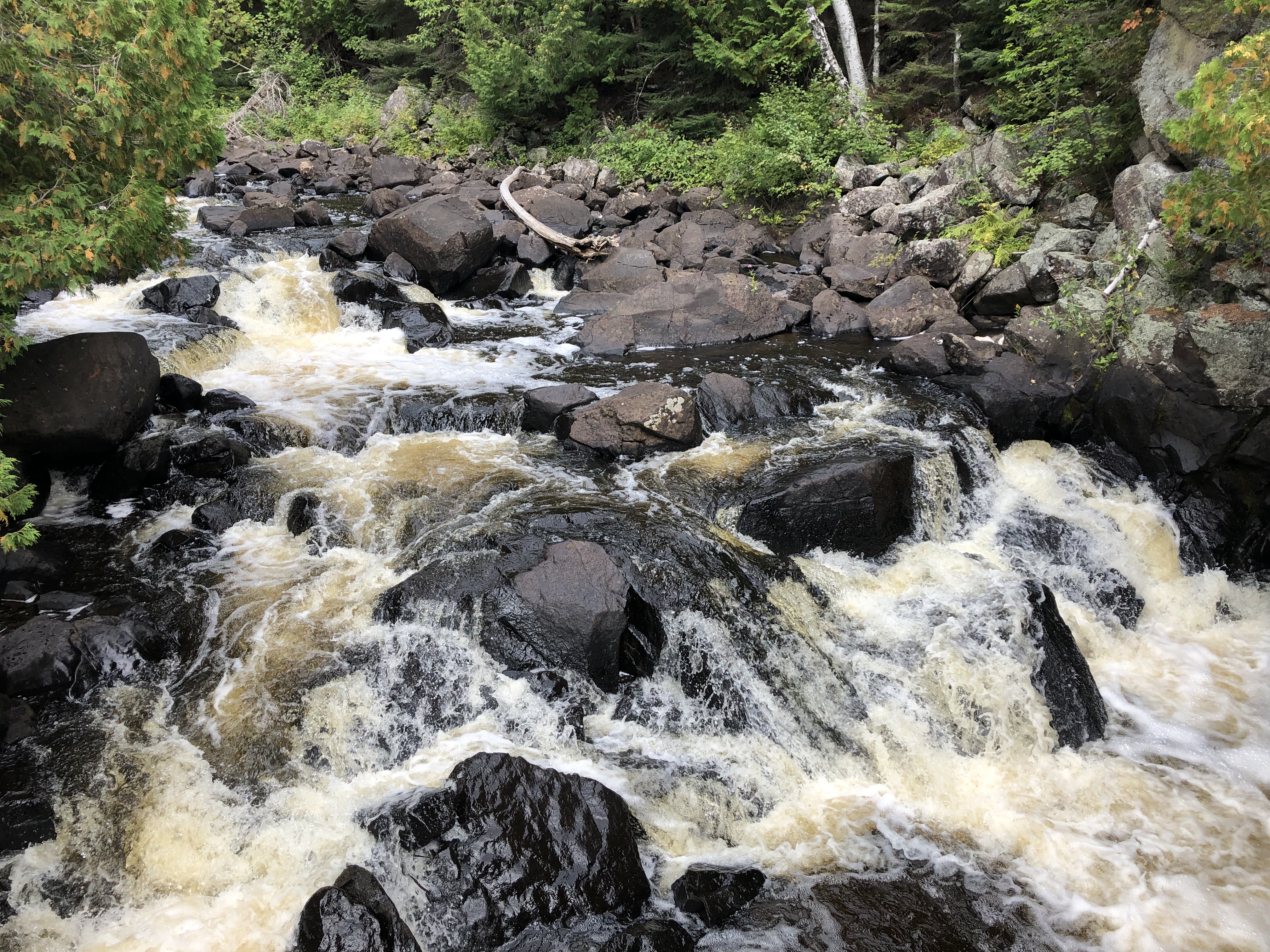 I only managed to hike about 17 miles, and 18 miles the next day, shorter than I’d planned. I was a day behind schedule. At this point, I was running out of food, but loving hiking along the Gooseberry River, which you watch grow from a creek into a roaring, waterfall-lined river.
